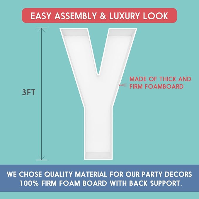 3FT Tall Mosaic Balloon Frame Letters Big Marquee Light Up Letters DIY Kit for Birthday Party Wedding Backdrop Decor Letter Y Pre-Cut Foam Board