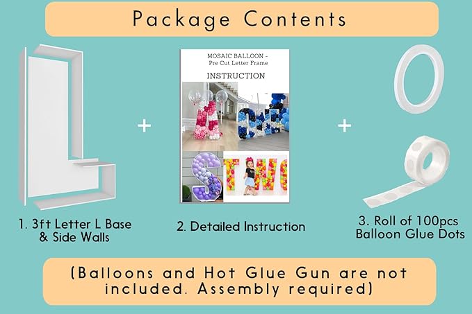 - FAST and EASY ASSEMBLY - Decorate your party like an event balloon artist! Our 3ft mosaic balloon letters are pre-cut to the perfect measurements, saving you the hassle of printing, measuring, and cutting templates yourself!