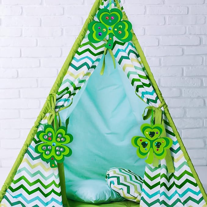• Color: St. Patrick's Day clover shaped foam cutouts ornaments and die-cut foam St. Patrick's Day stickers are in Irish green and lime green. Cute artificial rhinestone stickers feature heart shape and round shape and are in green and silver. They will add a shimmery flair to your Irish lucky shamrock ornaments. Easy to assemble with a simple peel and stick design. Kids can follow the attached instructions to create their own cute shamrock ornaments.
