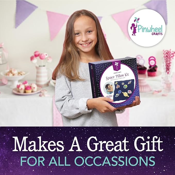 Pinwheel Crafts Beginner Sewing Kit for Kids 8-12 with Telescope - Astronomy Solar System Easy Sew Space Pillow Kit with Planet Patches - Make Your Own Plush Craft