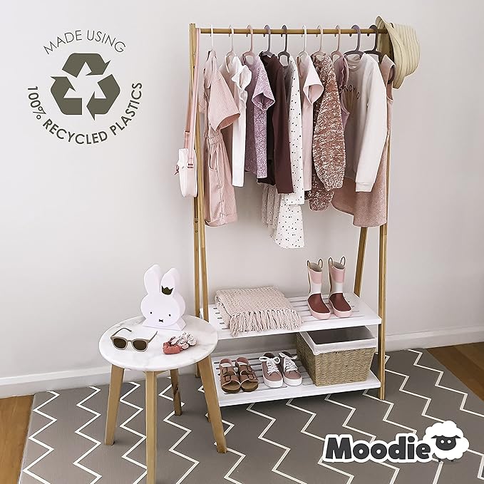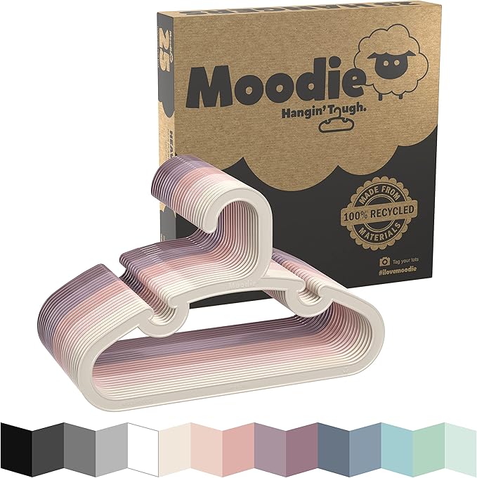 - 🎨 Stylish Scandinavian Design: Add a touch of Scandinavian flair to your child's closet with our bespoke color options. Choose from bright white, pink sunset multi, or blue ocean ombre to match your child's style and personality. With both functionality and style, our Moodie medium childrens hangers for clothes are the perfect addition to any small wardrobe.