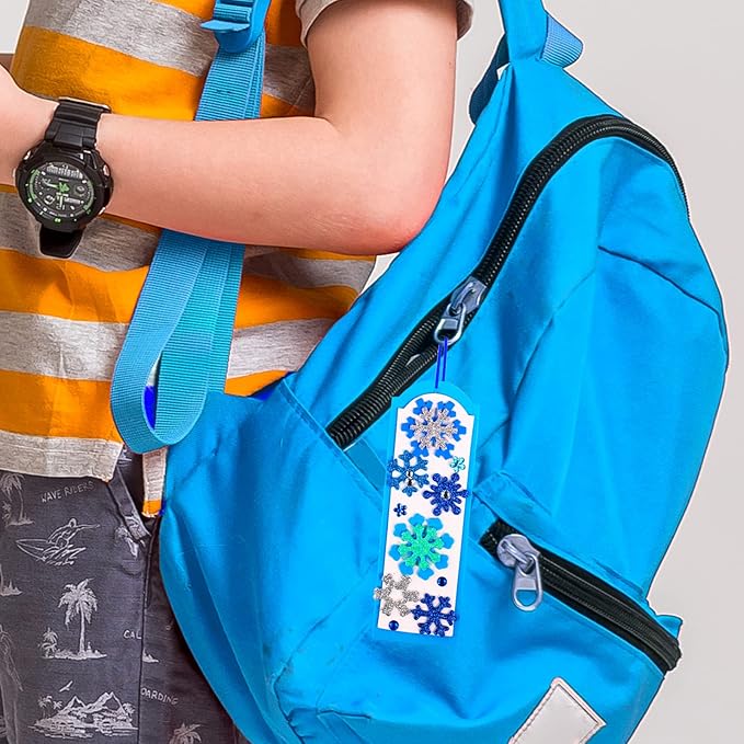 • Color: foam bookmarks and foam snowflake stickers are in blue, royal blue, light blue, and turquoise. Glitter foam snowflake cutouts stickers are in blue, royal blue, teal, and silver. The foam bookmarks are blank, so kids can personalize or write on each bookmark and make it one-of-a-kind. Kids are easy to follow the attached instructions to create their own cute Christmas snowflake bookmarks.