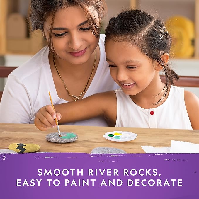 - HOURS OF SHAREABLE FUN - Kids will have a blast as they express their creativity with friends and family! The 15 included river stones are smooth and easy to decorate with the included art supplies.