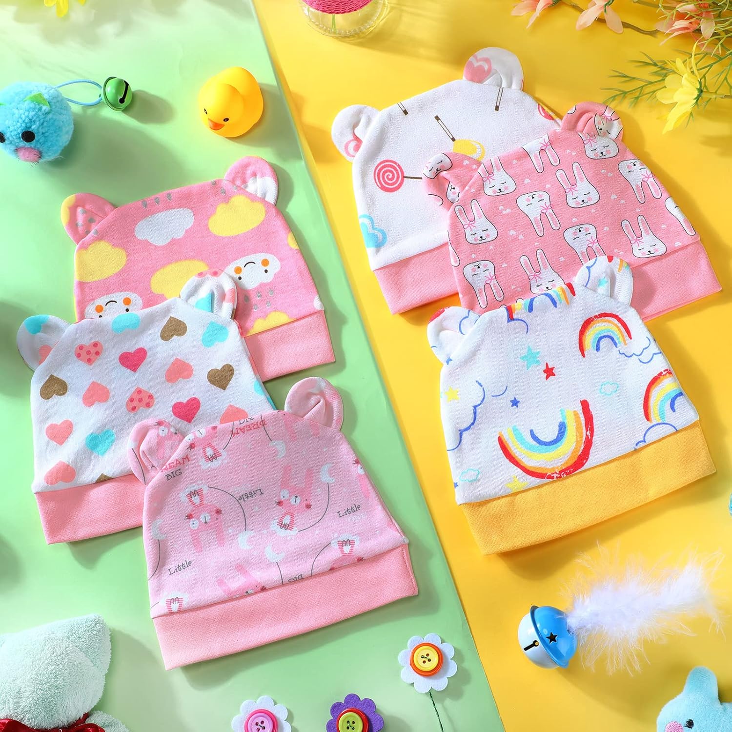 • Elastic and comfortable: our unisex newborn hats come with nice elasticity, convenient for to adjust to fit babies' heads of different sizes; They are easy to put on and take off, bringing kids comfortable wearing and cute appearances
