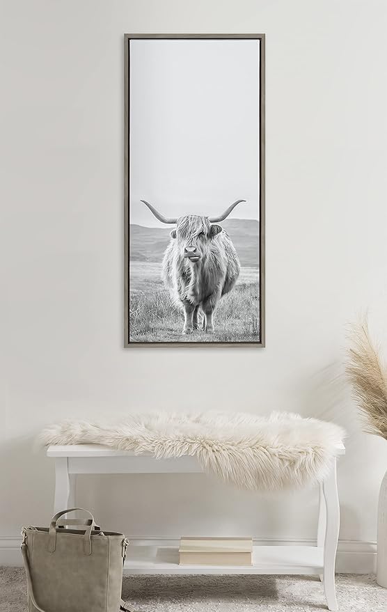 - Artist Designed: Print "Highland Cow Mountain Landscape Vertical BW" 2022 The Creative Bunch Studio