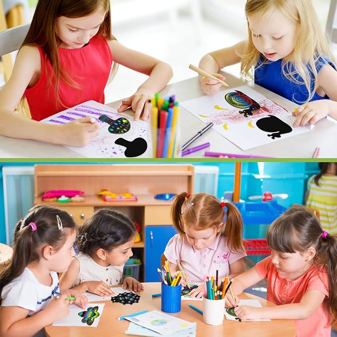 - Simple to Apply: the scratch crafts art card is easy to use, just prepare the accessories for the scratch card DIY crafts in advance, then use the bamboo stick to scratch the black scratch paper card to design patterns you like, and when finished, you can stick them to the wall for decorations