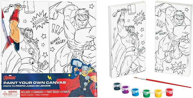 - UNLEASH YOUR INNER ARTIST: Color Your Own Marvel Avengers canvases, featuring 2 high-quality 8" x 4" canvases, 1 paintbrush, and 6 vivid, non-toxic paints, offering endless creative possibilities for kids and fans of all ages.