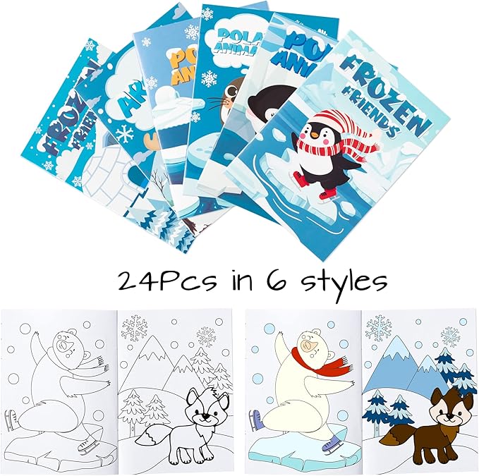 24Pcs Polar Animals Coloring Books Winter Theme DIY Art Booklet Drawing Pattern Including Arctic Bear Penguin Birthday Party Favors Gifts Home Classroom Activity Supplies for Kids Age 4-8