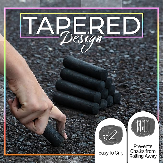 - Easy to Use Design: Tapered chalk sticks make it easy for even the littlest artist and prevent them from rolling away.