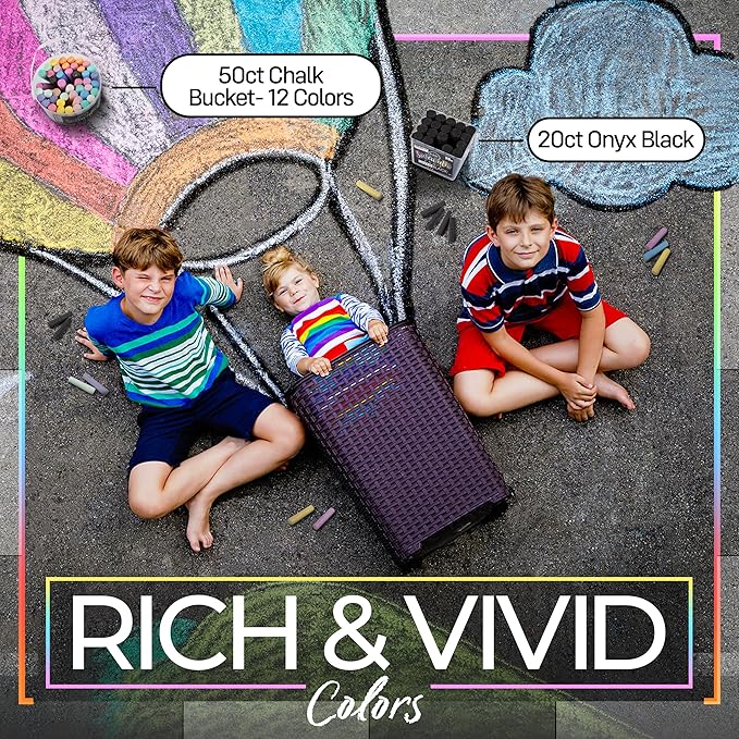 - Quality Chalk: Non-toxic, safe sidewalk chalk perfect for ages 4+ with minimal dust formulation for easy clean up.