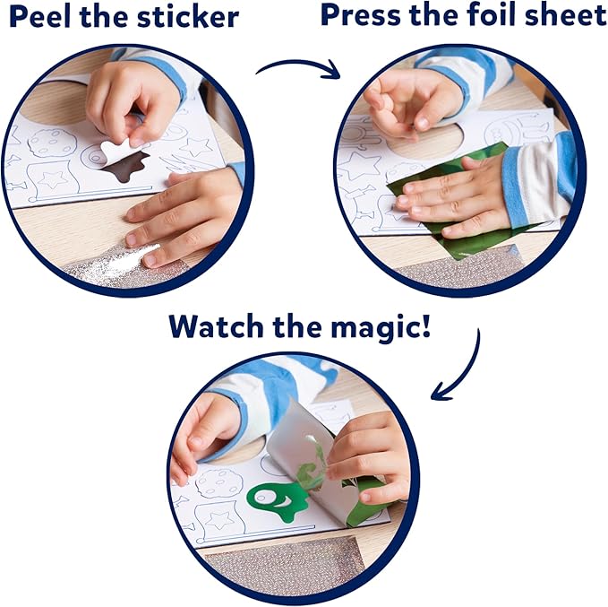 - FOIL ART & CRAFT ACTIVITY: Let your child's imagination soar with this magical, mess-free foil art and craft activity. They can create stunning pictures featuring planets, astronauts, shooting stars, and more, sparking hours of creative play!