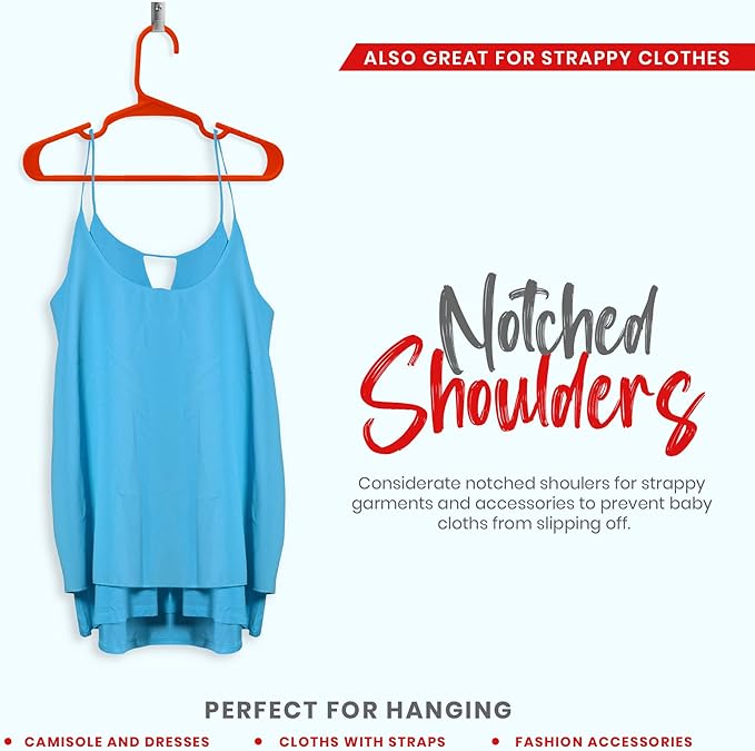 - Impeccable Fabrication - The kid’s clothes hangers comprises of reinforced plastic with built-in shoulder grooves, to prevent the baby clothes from slipping or falling off the hangers