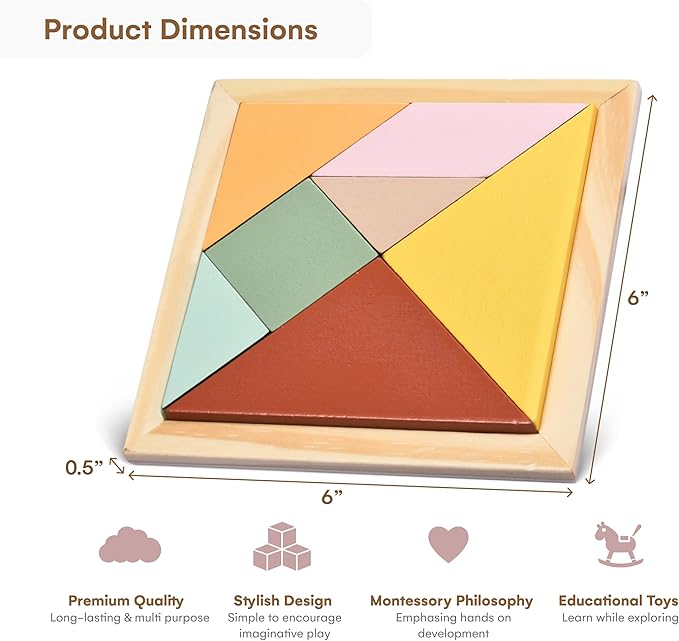 Childlike Behavior 6 inches Puzzle Board - Tangram Wooden Puzzle - Brain Teaser Puzzles Block for Kids & Adult - Wood Block Puzzle - Logic Puzzle - Educational Sensory Toys for all ages