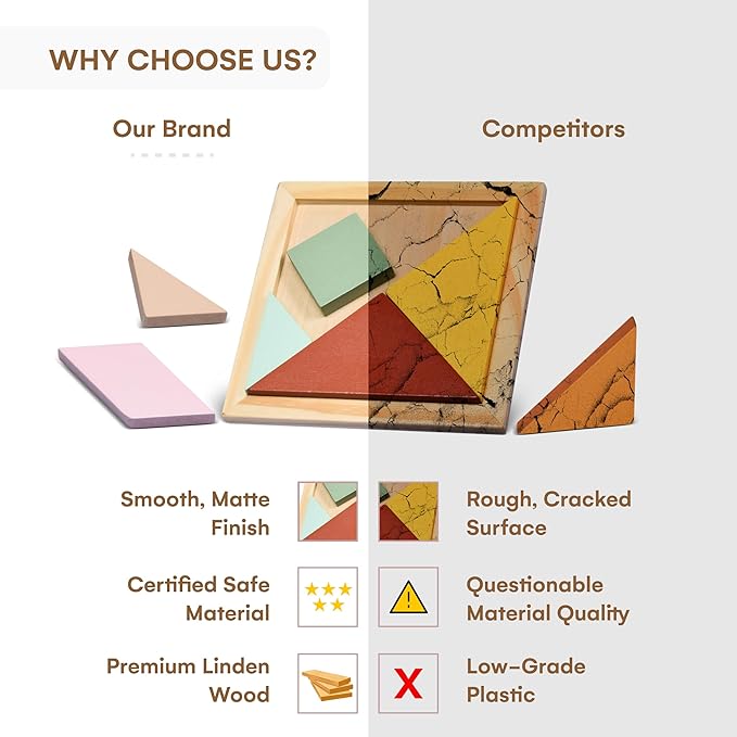 - Memory & Skill Enhancement - This brain tangram puzzle is a great way to help improve fine motor skills and problem-solving skills. It also helps with hand-eye coordination and attention concentration.