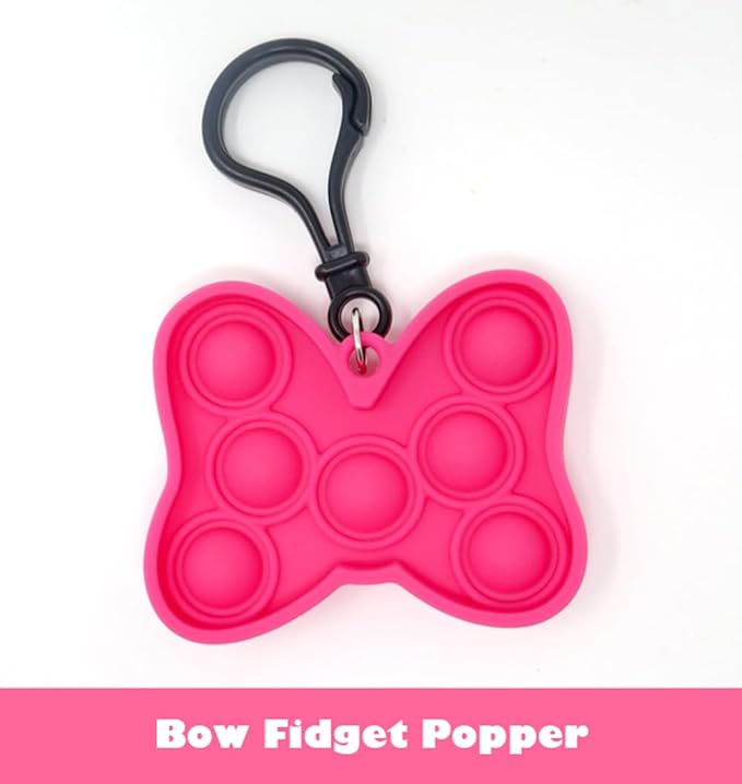 - Bow Pop Fidget keychain toy, Officially licensed. Sensory fun that keeps the little ones busy popping and learning fine motor skills. Noise-free and soft, reusable and washable.