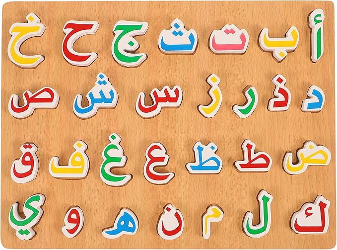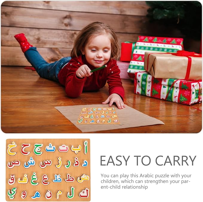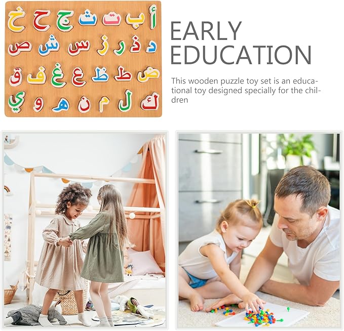1 Set Wooden Arabic Alphabet Puzzle Childrens Montessori Preschool Education Hand Grip Puzzle Game for Kids Wooden Toys Educational Arabic Learning for Kids
