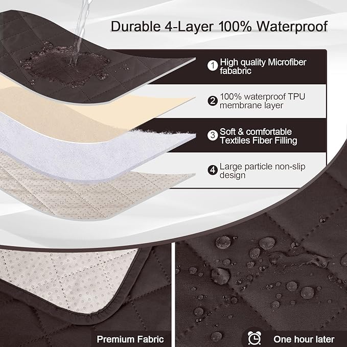 KinCam 100% Waterproof Recliner Chair Cover, Reclining Couch Covers for Pets, Dogs, Recliner Couch Slipcover Furniture Protector with Elastic Straps for Kids(23.6", Chocolate)