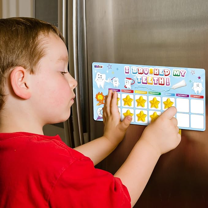 - Rewarding Good Habits: The kids rewarding chart includes 14 magnetic stars and has a smart design displaying each day of the week, promoting a proper dental routine from a young age!