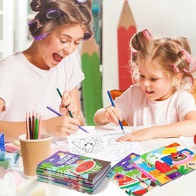 - Summer Themed:These coloring book set contains 6 different watermelon pattern covers, full of summer elements like different shapes of cartoon watermelon, seaside, beach, sunglasses, swimming ring and more. The inner pages are the same which can be used for children to create various kinds of styles.