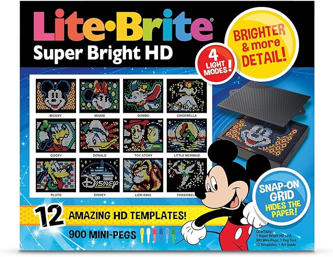 Lite Brite Super Bright HD, Disney Edition - Creative Retro Light-Up Screen – Educational Play for Children, Enhances Creativity, Gift for Boys and Girls Ages 6+