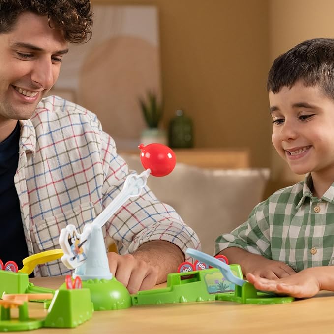 Bluey Keepy Uppy Game. Help, Bingo, and Chilli Keep The Motorized Balloon in The Air with The Character Paddles for 2-3 Players. Ages 4+