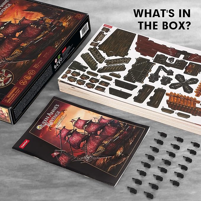 - Rebuild the Most Powerful Ship of the Seven Seas: Dive into the world of legendary pirates with the Queen Anne's Revenge 3D puzzle. This infamous ship, captained by Blackbeard, is richly decorated in crimson and gold, with skulls adorning its bow and stern. Perfect for exploring pirate lore in an engaging way