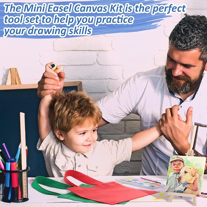 - Nice Combination to Meet Painting Needs: you will receive totally 24 sets, including 24 mini canvas with mini easels, 24 watercolor paints (each contains 12 colors and a brush), and 24 non woven bags, the combination is enough for kids to use, easily satisfying daily painting needs and sharing needs