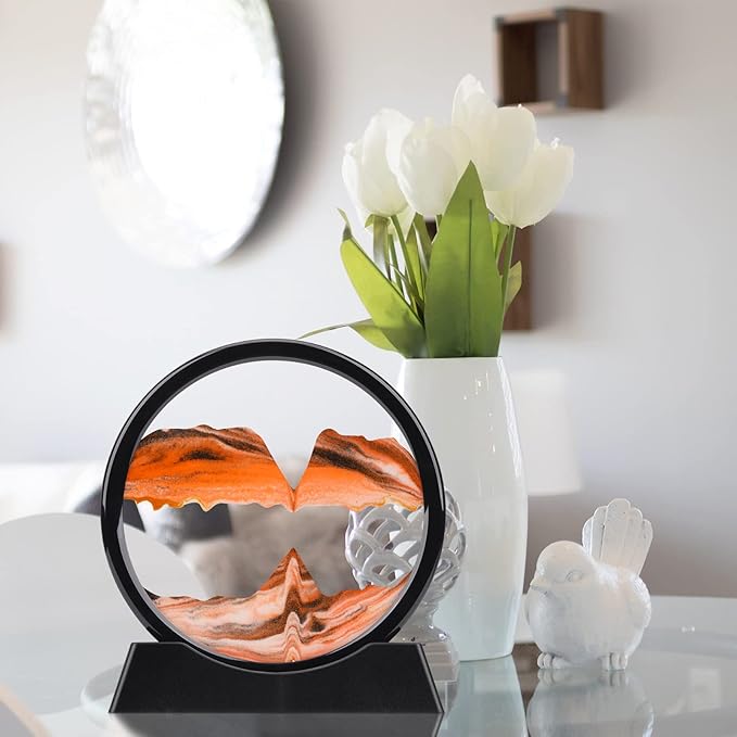 - CALMING SENSORY TOY: Moving sand pictures create a new sand picture with each turn.The sand never makes the same design twice. Watching the colored sand slowly tumble down the circle is relaxing and calming to the mind, which can relieve stress, relax your eyes,cultivate patience. give you unexpected surprise