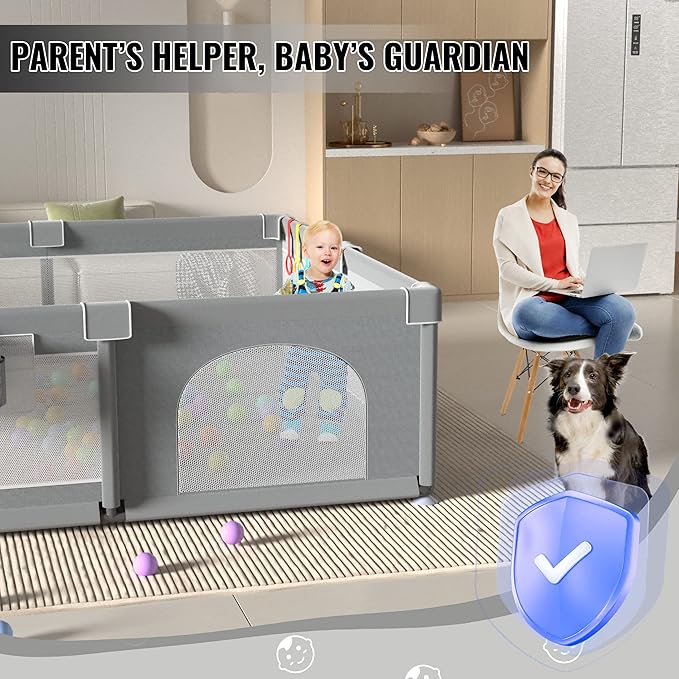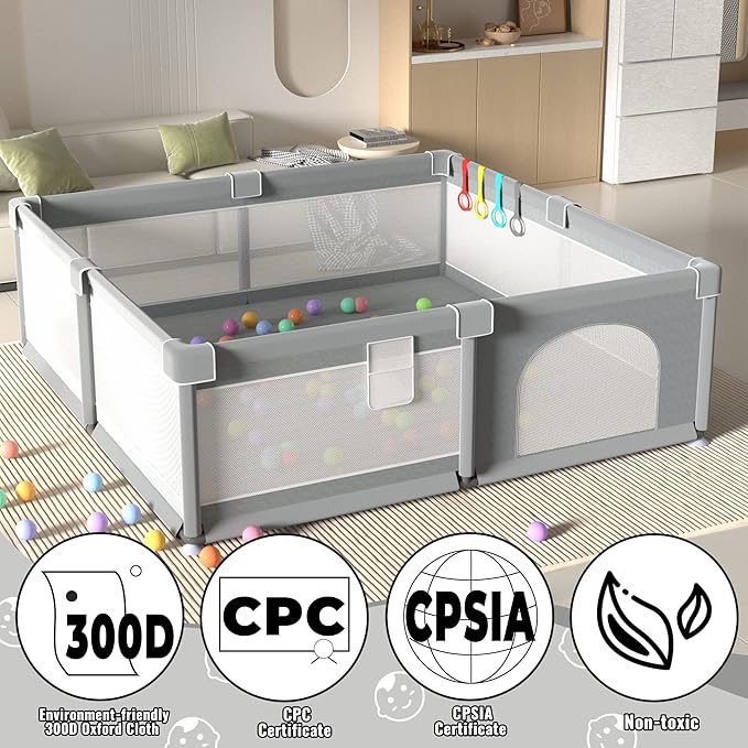 LUTIKIANG Baby Playpen, 79" X 71" Extra Large Playpen for Babies and Toddlers with Gates, Baby Play Yards, Baby Fence Play Area, Safety Indoor Baby Play Area with Ocean Balls (Grey)