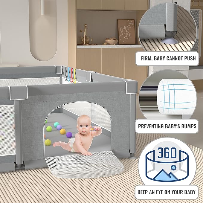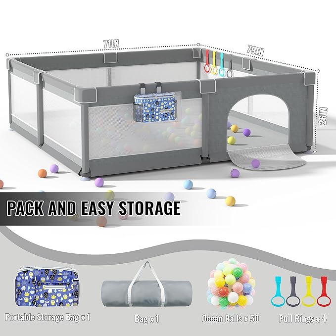 - 🌟 【Vast Universe for Tiny Explorers】Spanning an impressive 79*71 inches, this playpen becomes an entire universe for babies and toddlers, a sprawling landscape for giggles, crawls, and endless adventures.