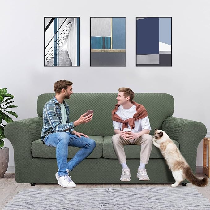 MAXIJIN 3 Piece Stretch Couch Covers for 2 Cushion Couch Sofa Slipcovers with 2 Extra Large Seat Cushion Couch Jacquard Loveseat Sofa Couch Cover for Dogs (2 Cushion Sofa, Army Green)