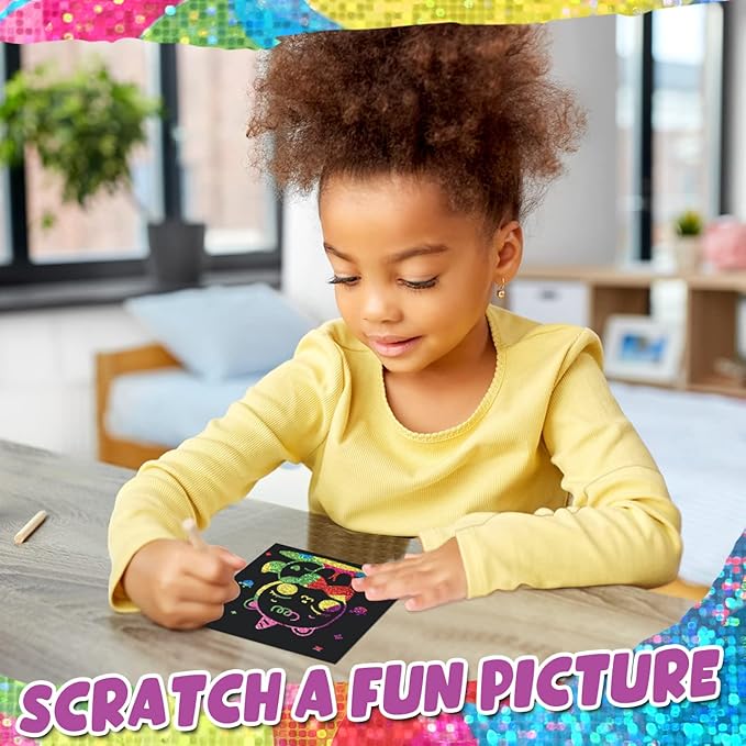 - Rainbow Scratch Mini Art Notes: Our scratch paper art with 160 sheets of holographic scratch note cards (Size: 3.5*3.5inch /8.5*8.5cm) and 5 Styluses(3.5inch/8.5cm). Super Bulk arts crafts kits for fun way to doodle, leave notes, write Lists and create cool illustrations and designs. Both kids and adults love exercising their imaginations with this creative rainbow art craft gift ideas