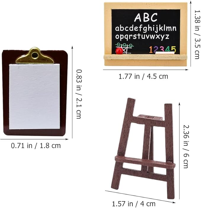 - Realistic Simulation: Add realism to your dollhouse scenes with the mini simulation easel, drawing board, and writing board decorations included in this set. Whether you're creating a DIY landscape or setting up a miniature classroom, these accessories provide the perfect finishing touch, elevating the authenticity of your miniature world