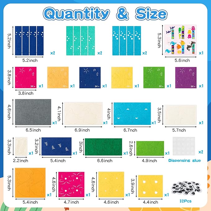 - [Sea Animals Theme DIY Kit] Package contains 24 packs of DIY bookmark craft with 6 different sea animals pattern designs such as shark, seahorse, octopus and dolphin, assorted felt accessories and various dispensing glue. This kit can meet your different kinds of DIY needs and make you relish the handwork fun.