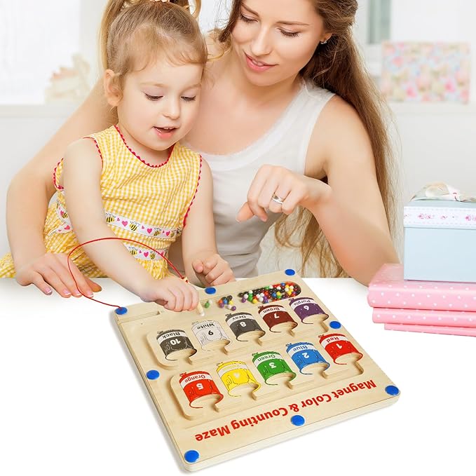 - Interactive Learning Activities:This creative wooden magnetic maze montessori toys, is ideal for parents and teachers to lead toddlers playing and have warm interaction at home and preschool.The educational toy helps kids master basic math and color concepts, and improve problem-solving ability.Enjoy color, sorting & counting, and make more fun for early learning activities!