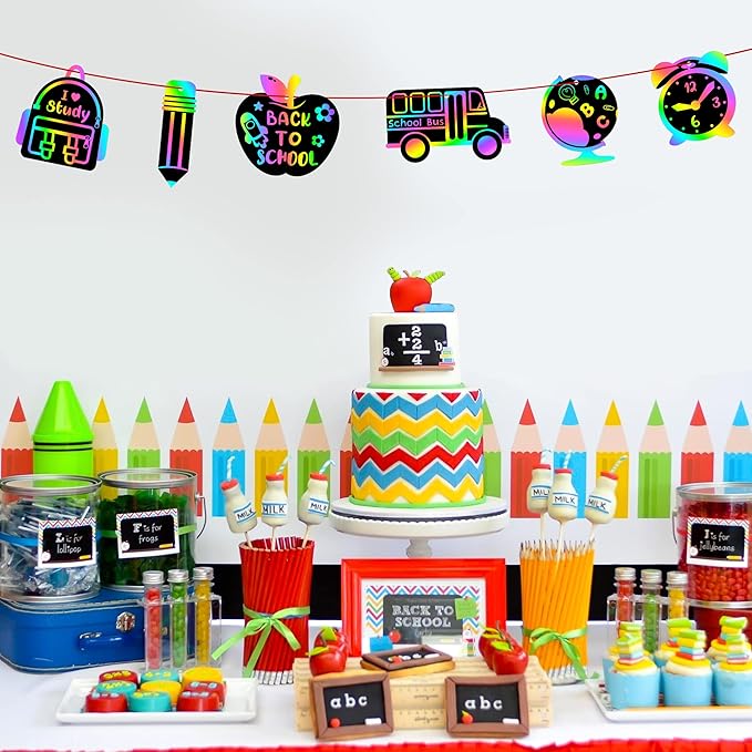 WATINC 60pcs Back to School Scratch Art for Kids, Paper Scratch Off Cards Craft Kit, Pencil Bus Bag Magic Color Bookmarks Party Favors, School Classroom Appreciation Activity DIY Project