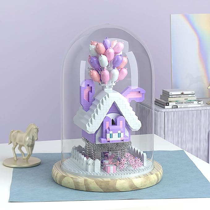 House Building Blocks Kit Toys Building Set, Miniature 1418 Pcs Micro Bricks Collectible Creative Teen Girl Gifts Age 14 and Up, Dust Cover, and Wooden Base Up Balloon Castle Set