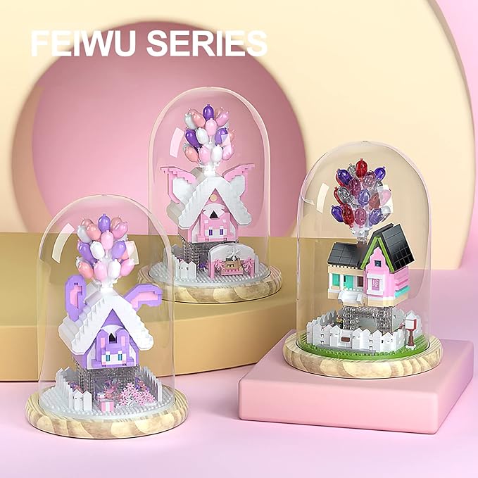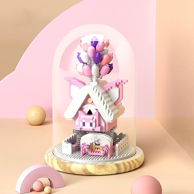 House Building Blocks Kit Toys Set, Miniature1493 Pcs Micro Bricks Collectible Creative Teen Girl Gifts Age 14 and Up, Dust Cover, and Wooden Base Up Balloon Castle Toys DIY Decoration Home