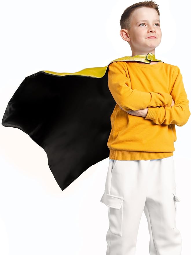 - 27.5 x 27.5 inches in size, suitable for boys and girls aged 3-12 years, with an elastic band on the felt masks that can be adjusted for the perfect fit. Made of soft and safe glossy satin material, these capes are comfortable .