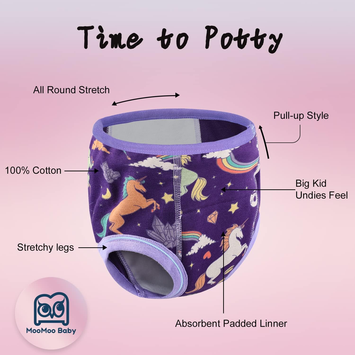 MooMoo Baby Potty Training Underwear 10 Packs Absorbent Toddler Training Pants for Boys and Girls Cotton Pee Pants 2T-9T