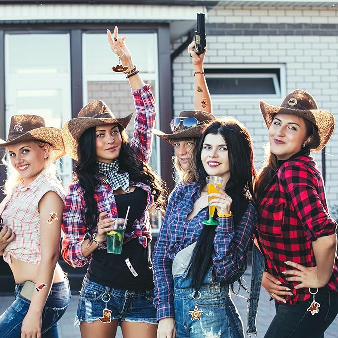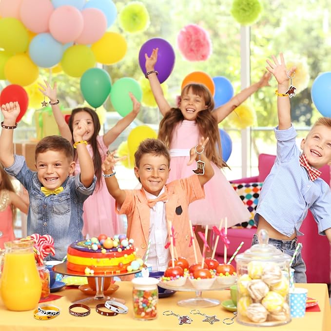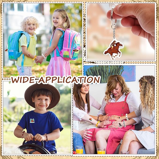 - Package Contents: the western party favors package contains 20 pcs cowboy boy silicone bracelets and 20 pcs acrylic keychains in 5 different styles, 50 pcs western cowboy boy irregular stickers, a sufficient set as gifts for western themed parties