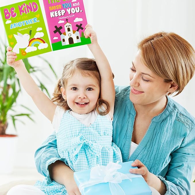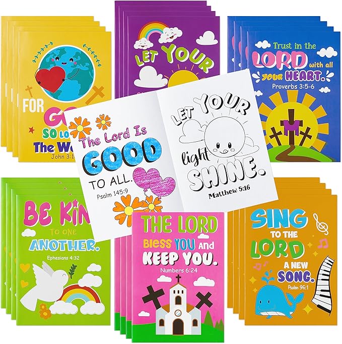 24Pcs Bible Coloring Books Religious Theme DIY Color-in Pages with Inspirational Words Drawing Holiday Christian Activity Supplies for Sunday School Classroom Rewards Artwork Gift for Kids