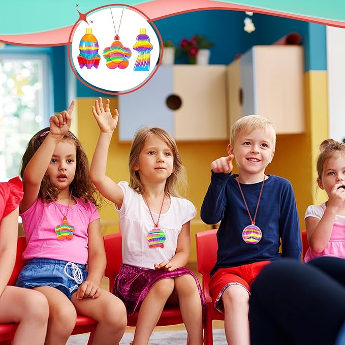 - Exquisite Additions: the sand art necklaces are designed with various vibrant shapes, like flower, moon, rainbow, rocket and more, that the craft sand is an interesting accessory to various occasions, like birthday party, summer themed parties, beach games, Halloween parties, etc., both boys and girls will love it