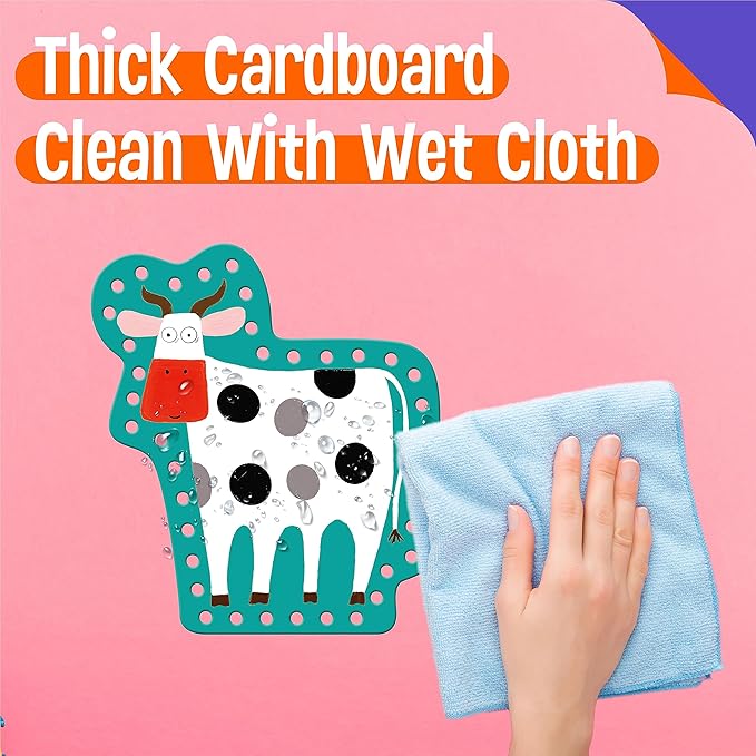 - Bright-colored & Eye-catching: The pattern covers different farm animals, like duck, pig, horse, cow, rabbit, frog, sheep, mouse and rooster. The patterns on cards are colorful, big and vibrant. The holes are clearly cut and easy for preschoolers to work with. The strings are easy for children to use and fit into the holes easily.