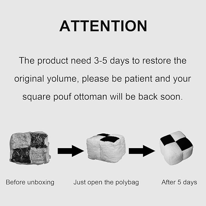 - Hassle-Free Setup: No need to fill the pouf with anything upon arrival. Just open the vacuum package, and it's ready to use!