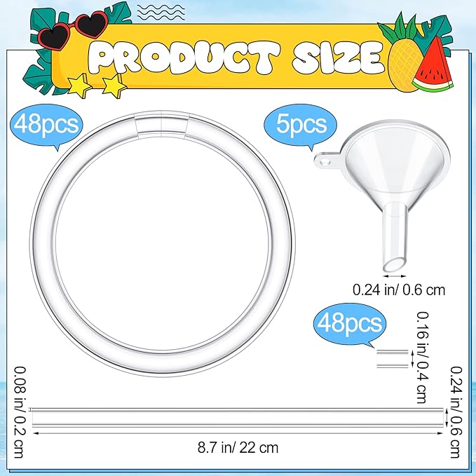 - Suitable Size: plastic bracelets for sand art are about 8.7 inch/ 22 cm long, 0.24 inch/ 0.6 cm in diameter, and 0.08 inch/ 0.2 cm thick, suitable for most children and adults; Each bracelet will be equipped with a transparent stopper with a diameter of about 0.16 inch/ 0.4 cm; And the hole of the plastic funnel is about 0.24 inch/ 0.6 cm, small and delicate