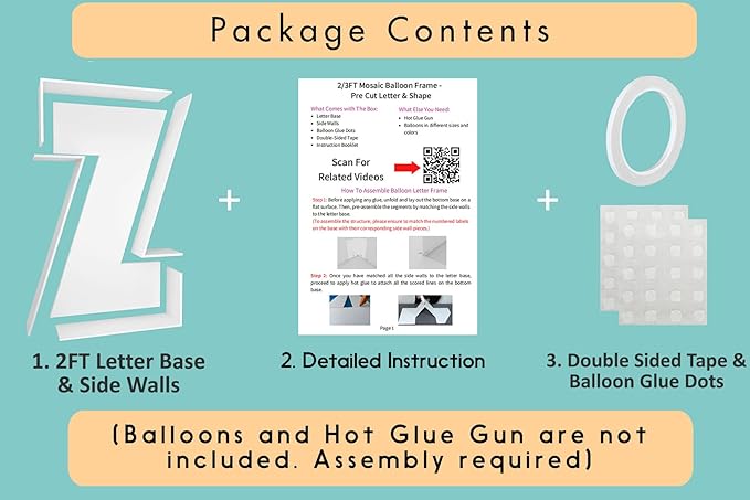 - FAST and EASY ASSEMBLY - Decorate your party like an event balloon artist! Our 2ft mosaic balloon frame letters are pre-cut to the perfect measurements, saving you the hassle of printing, measuring, and cutting templates yourself!