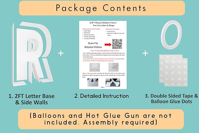 - FAST and EASY ASSEMBLY - Decorate your party like an event balloon artist! Our 2ft mosaic balloon frame letters are pre-cut to the perfect measurements, saving you the hassle of printing, measuring, and cutting templates yourself!