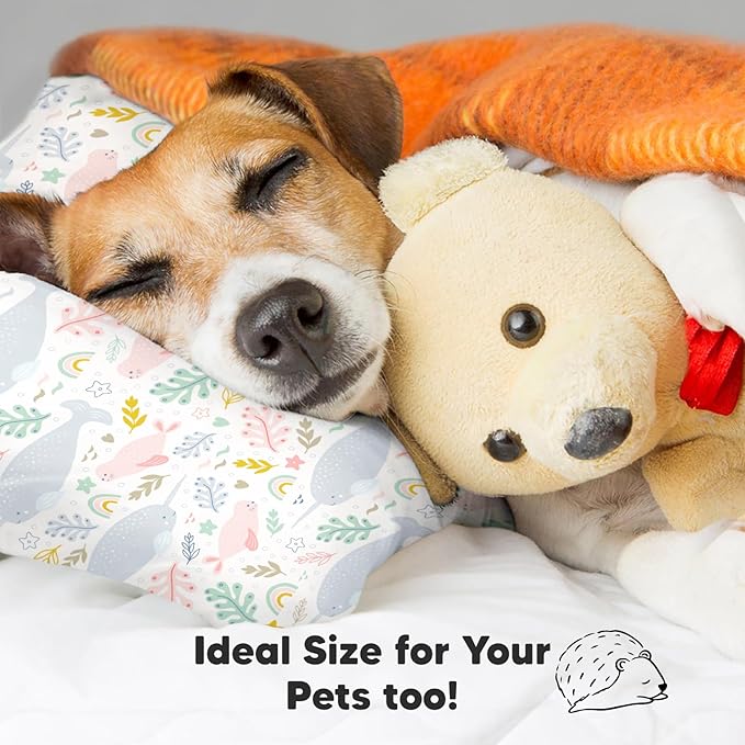 Toddler Pillow with Pillowcase - 13x18 My Little Dreamy Pillow, Organic Cotton Toddler Pillows for Sleeping, Kids Pillow, Travel Pillows, Mini Pillow, Nursery Pillow, Toddler Bed Pillow (Narwhal)