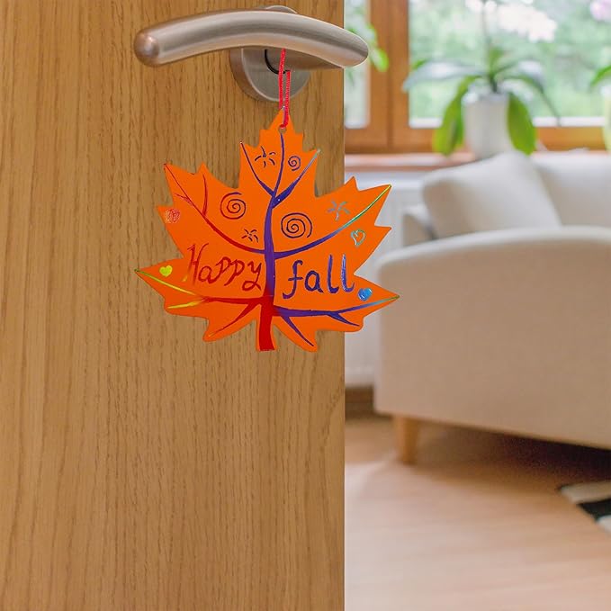 - Creative and fun autumn craft project : These fall scratch art sets are fun Fall and Thanksgiving craft project where kids can scratch their own colorful and creative designs or write and draw what they are thankful for onto each leaf. Once finished, The unique scratch art fall leaves can also as ornaments to decorate classrooms and homes, whether hanging on trees, doorknobs, railings, or even as bookmarks. Great for gifting, party favors, classroom rewards, and more. Copyright (c) Winlyn.
